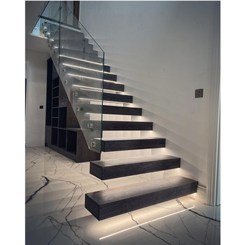 Cam korkuluk ile CBMmart 2024 çağdaş paslanmaz çelik korkuluk ahşap basamak yüzer merdiven